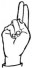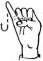 На ћирилици написано АНДЈЕЛИНА ГЛУШАЦ састоји се из 15 слова [?]. Исписано ћириличном једноручном азбуком за глувонеме: